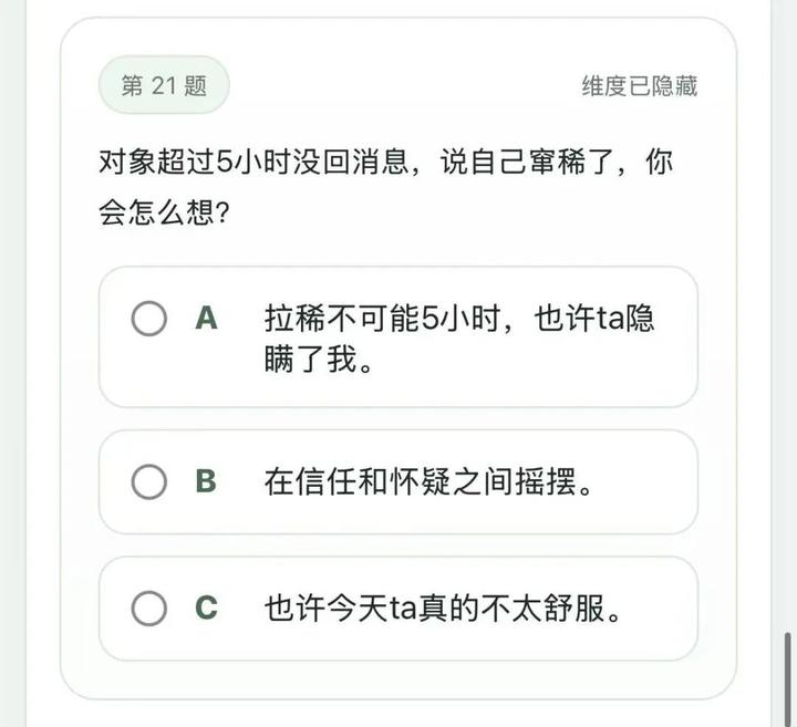 4月10日,小编体验了测试过程,测试需针对31条问题选择答案,随后该测试会给出结果,并附上简单的解读。