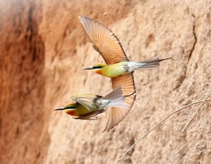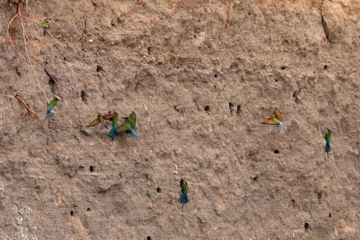 栗喉蜂虎对栖息环境要求严苛,是生态环境的“晴雨表”。每年4月至8月,它们都会在巧家筑巢繁殖,当地独特的干热河谷气候、松软沙质崖壁以及丰富的昆虫资源,为其繁衍栖息提供了绝佳条件。近年来,巧家县持续加大生态保护力度,强化鸟类栖息地巡护监管,群众护鸟爱鸟意识不断提升,如今栗喉蜂虎栖息范围逐步扩大,年年如期归来的这群“生态精灵”,正是巧家生态环境持续优化的生动见证。