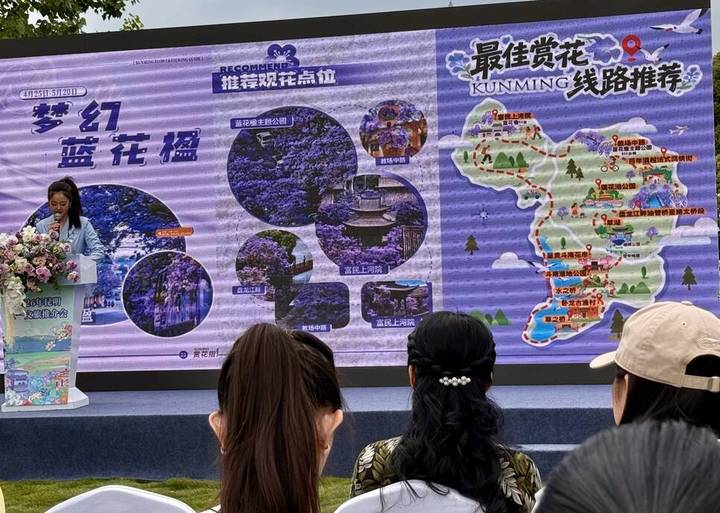 4月下旬至5月下旬,教场中路、盘龙江畔、翠湖周边等蓝花楹观赏点进入盛花期。五华区第八届蓝花楹艺术节将于4月10日至5月10日举办,推出文创集市、主题音乐节及三地文旅联动活动。