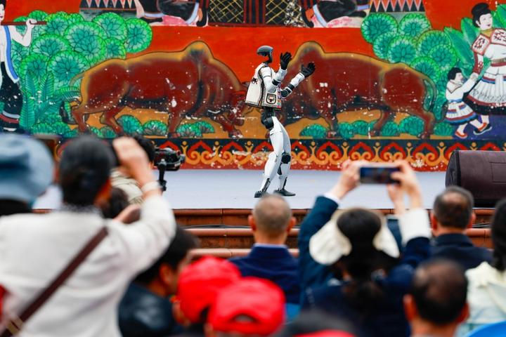 现场观众纷纷记录机器人跳舞瞬间(4月10日摄)。