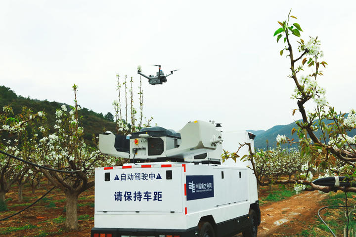 无人车在易门县龙泉街道一果园开展自动巡检。 代薇摄