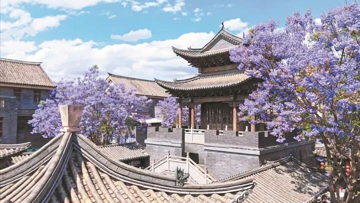 富民县上河院文旅小镇蓝花楹盛开。富民县文化和旅游局供图