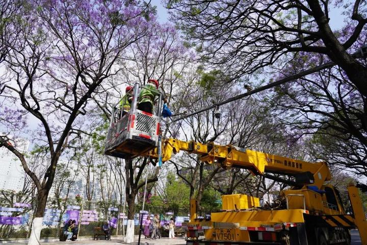 为保障今年盛花品质,养护工作早在去年6月上一轮花期结束后就已启动。五华区绿化处结合季节特点,有序开展修剪病枝弱枝、防治病虫害、足量透水浇灌、施加微量元素肥等多项作业,全方位促进植株健壮生长。其中,根系养护为今年管护重点。