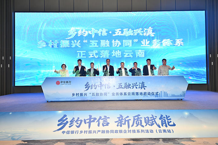 活动现场举行了“乡约中信·五融兴滇”乡村振兴五融协同业务体系云南落地启动仪式,标志着中信银行在云南乡村振兴领域的服务升级与全面落地。中信银行乡村振兴部介绍了“五融协同·信兴乡村”综合金融服务方案,围绕“融资、融智、融产、融建、融销”五大维度,为涉农经营主体提供投融资、规划咨询、产业支持、园区建设、产销对接等一体化综合服务,全方位赋能农业现代化发展。