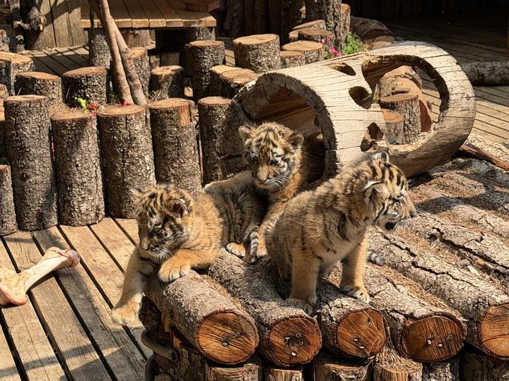随后,狮虎山的三只东北虎幼崽化身“小小艺术家”,在保育员的辅助下,用肉乎乎的爪子在书法画卷上按下爪印。这一抹“开门红”寓意小老虎未来脚踏实地、茁壮成长。仪式结束后,园区还在现场展示了亚成体老虎的野化训练过程:饲养员通过悬挂食物模拟野外捕猎环境,锻炼老虎的跳跃爆发力与扑抓本能。让公众在感受新生小老虎萌态之余,也能见证亚成体老虎野性之美的回归。