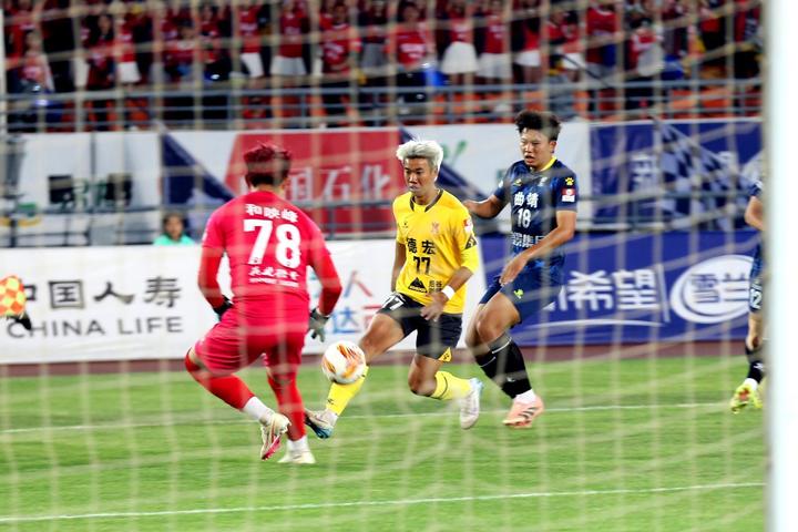 下半场易边再战,背水一战的德宏队主动调整战术,加强前场逼抢和进攻力度,不断冲击曲靖队防线,场上对抗愈发激烈。比赛第79分钟,场上局势陡然反转,曲靖队球员在门前联合解围时出现配合疏漏,不慎打入乌龙球,德宏队借此良机将比分扳为1:1。