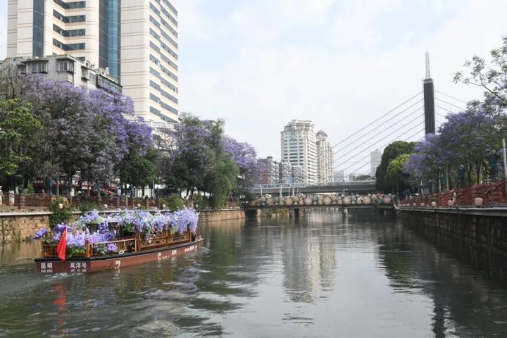 “五一”假期,盘龙区将在桃源广场举办蓝花楹主题活动,实现“水陆联动”赏花。市民、游客除乘船游览外,还可参与文创咖啡主题集市、蓝花楹主题诗画艺术展、人文生态讲堂、民族打跳互动以及落日音乐会等一系列特色活动,进一步丰富假日文旅体验。