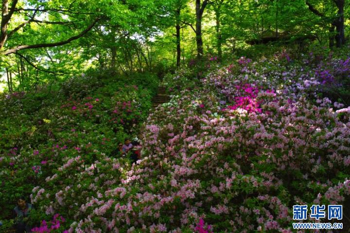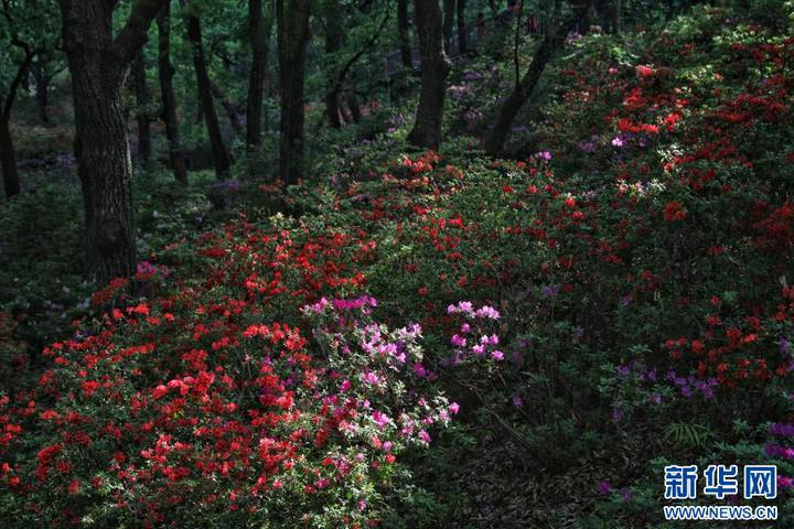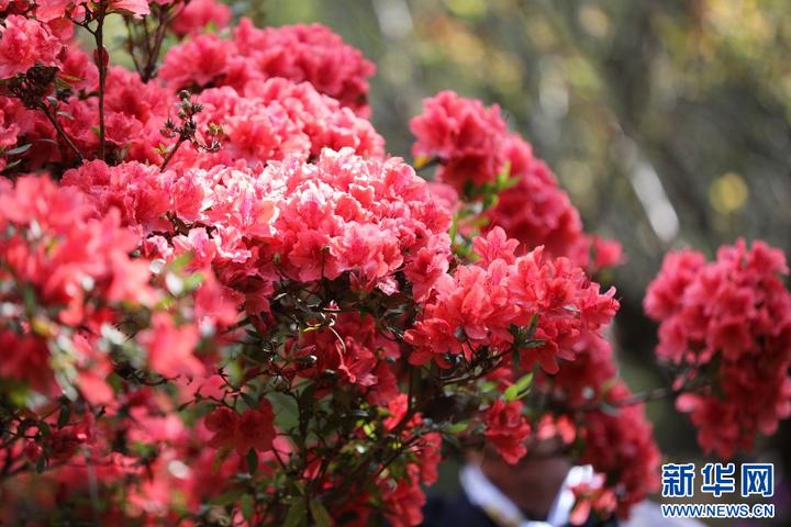 近日,在云南省昆明市黑龙潭公园,杜鹃花竞相绽放,站在观景台上放眼望去,漫山遍野的杜鹃花簇拥成团,宛如油画。(张丽 滇勇 汪芮宇)