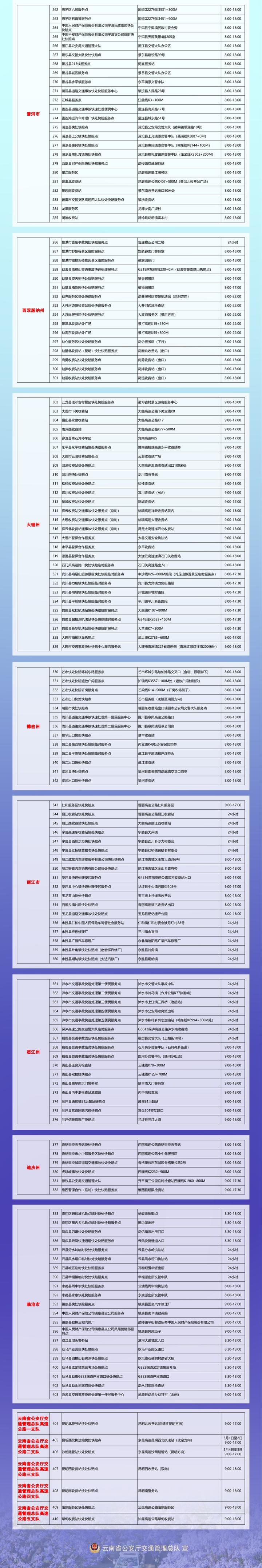 现将云南省各县、市、区公安机关交通管理部门设置的道路交通事故快处快赔临时服务点位置公布如下: