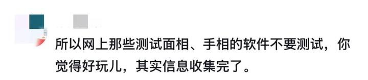 也有网友提醒,看手相等需要拍照的测试游戏,同样存在信息泄露风险,希望大家提高警惕。