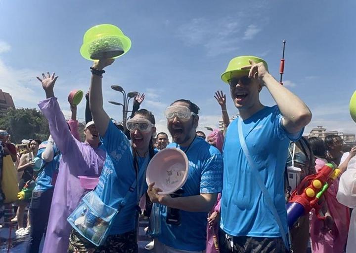 4月15日,来自美国的游客在西双版纳州景洪市泼水广场泼水狂欢。新华社记者 王贤思 摄