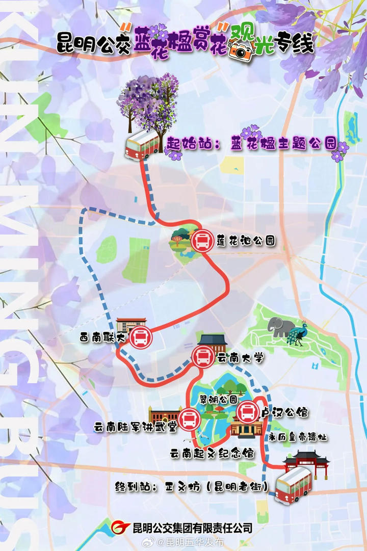 +订阅近日,教场中路的蓝花楹陆续绽放,教场中路片区“蓝花楹大道”随着赏花旺季的到来,人、车流激增。五小布为你整理了一份教场中路赏花停车场推荐、公共交通出行攻略,助你收获愉快浪漫的赏花体验。#五华蓝花楹##昆明五华限定紫浪漫# @所有人,这份“赏楹观花”出行指南请查收!