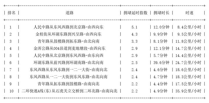 昆明道路拥堵排行榜top10:
