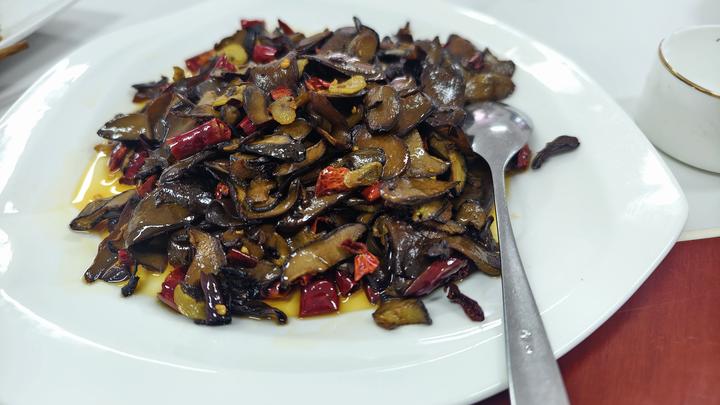 烹饪过后的人工栽培见手青。人民网记者符皓摄
