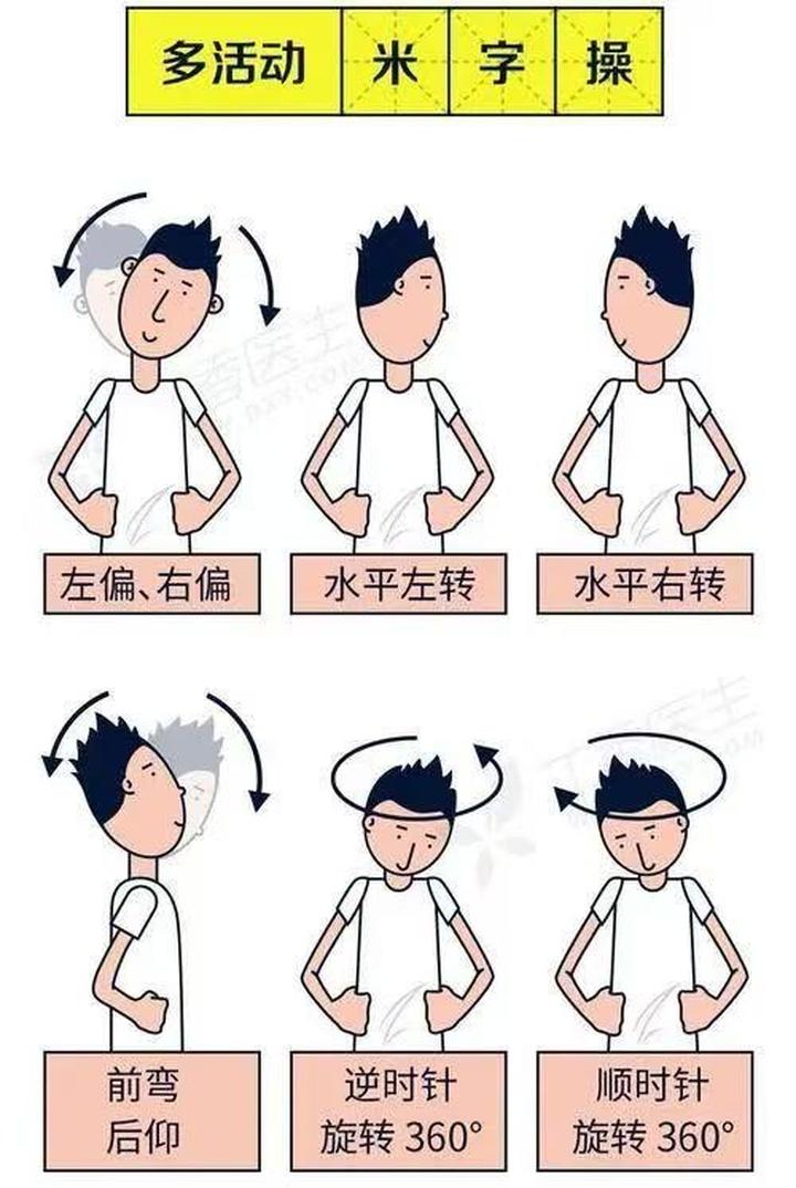 定期进行颈部伸展和强化练习,如"米字操"等。