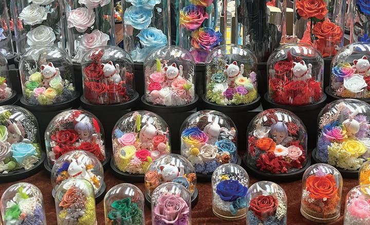 梁锴介绍,“花莱花趣”主打自然风与定制化设计,生产的永生花产品形态多样,包括礼盒、相框、花束及玩偶等,已为芬迪、迪奥等国际品牌代工永生花产品,目前产品已出口韩国、美国等国家,同时布局国内电商,在斗南也有自己的实体店。“目前,我们月营业额大概20多万元,随着国内市场对永生花认知度提升,我相信永生花的发展潜力会越来越大。”梁锴说。