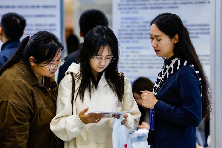 求职者与招聘人员交流沟通(10月17日摄)。刘云 摄
