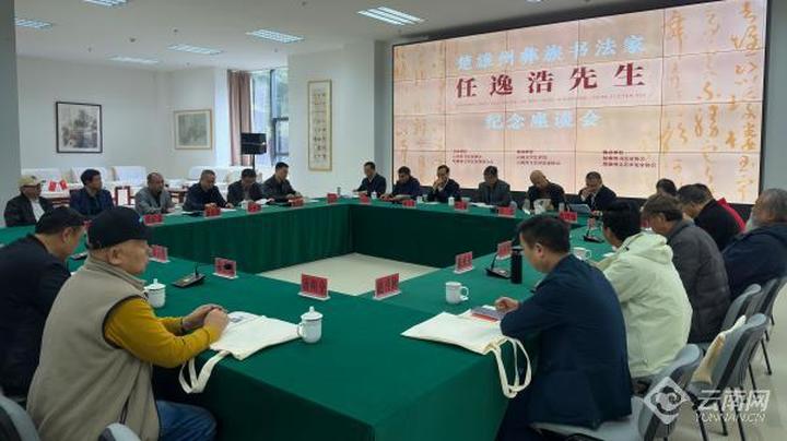 开展仪式结束后,“楚雄州彝族书法家任逸浩先生纪念座谈会”举行,会议内容围绕楚雄州民族特色展开。楚雄州作为人类发祥地与多民族聚居区,素有“世界恐龙之乡”“东方人类故乡”“世界野生菌王国”“中国绿孔雀之乡”等美誉,更是云南民族文化艺术的重要沃土。本次展览的两位主角——彝族书法家任逸浩与苗族画家王建才,正是在这片土地上成长起来的杰出代表。任逸浩先生深耕传统书法,将彝文的结构特质与汉文书法的笔墨意境相融合,形成“刚柔相济、方圆并用”的独特书风,其艺术理念与教育实践对云南书坛影响深远;王建才先生则以画笔描绘苗乡生活,创立“武定农民画派”,并创办武定县农民业余美术学校,四十年来培养各族艺术人才千余名,被誉为“苗族文化守望者”。他们的创作生动体现了民族文化的传承发展与时代精神的深度融合。