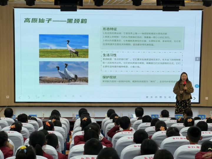 活动邀请中国科学院昆明动物研究所高级工程师李维薇为同学们讲述了《云南野生动物探秘 雨林与高原的生命传奇》一堂精彩的科普课。她用一个个生动有趣的故事,将云南特有的野生动物邻居们“请”到了同学们面前。从身披翡翠美衣的“雨林舞者”绿孔雀,到姿态优美轻盈的“高原仙子”黑颈鹤,再到超级聪明的“森林巨物”亚洲象,通过李维薇生动有趣的讲述,点燃了同学们对自然科学的浓厚兴趣。
