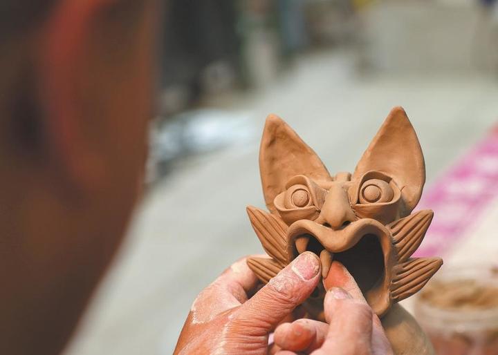 在昆明市盘龙区龙头街小窑村一座陶艺传习馆内,张才指导着前来学习制作瓦猫的游客。揉泥、拉坯、塑形,一只形态威猛的瓦猫渐次成型——这件以陶土烧制的器物,曾是屋脊上的“镇脊虎”,如今成为工艺品走进更多人的生活。