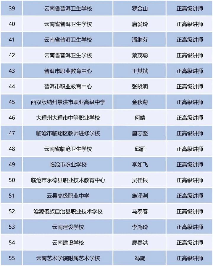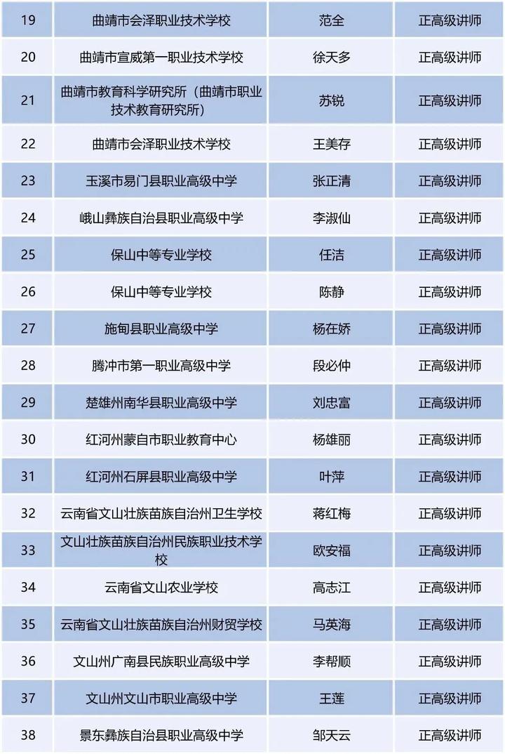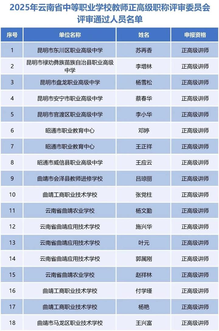 2025年云南省中等职业学校教师正高级职称评审委员会评审通过人员名单公示