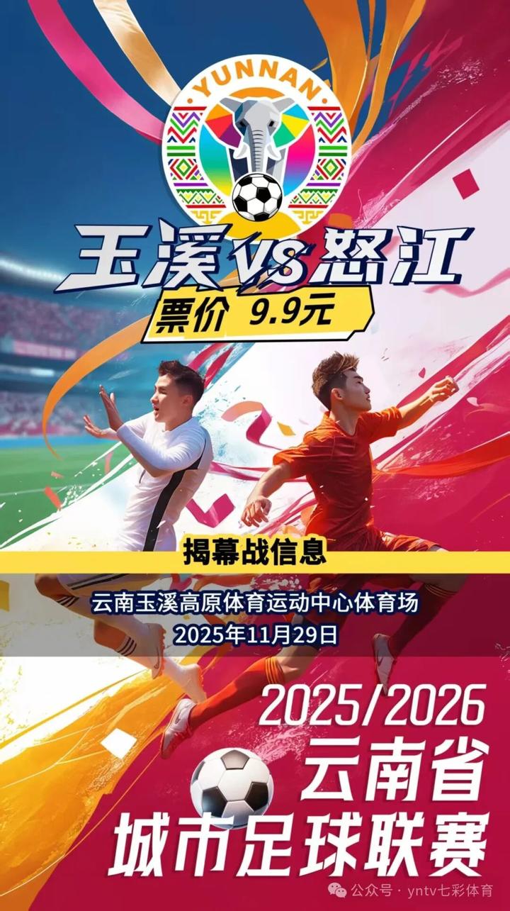 2025/2026云南省城市足球联赛(以下简称“滇超联赛”)揭幕战将于11月29日20:00在玉溪高原体育运动中心打响,玉溪队主场迎战怒江队,首场比赛的票价为9.9元,不日可通过“云南省城市足球联赛”小程序等平台购票。