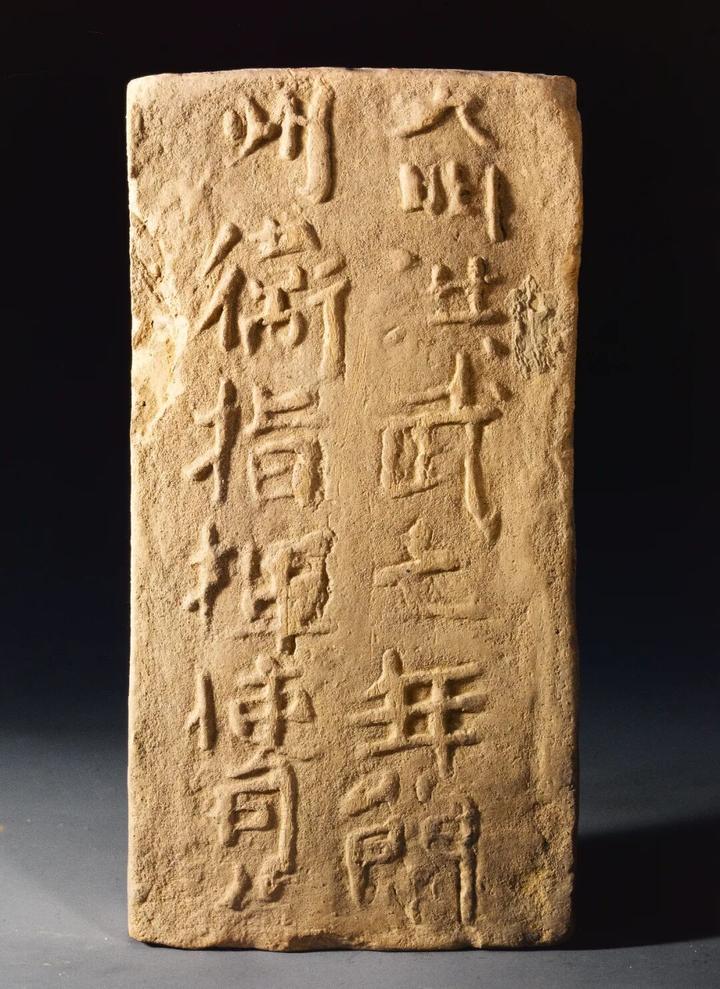 明代,兰州市西关十字城墙地基出土。长44厘米,宽22.5厘米,厚10.3厘米,稍残,上横印“大明洪武七年兰州卫指挥使司造”。