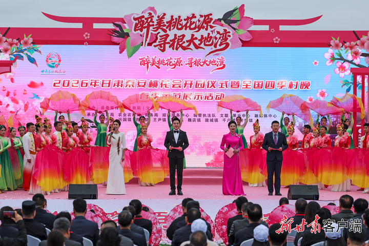 4月8日,2026年天水秦安桃花会开园仪式暨全国四季村晚春季示范展示活动在刘坪镇秦洼桃花堡景区举行。