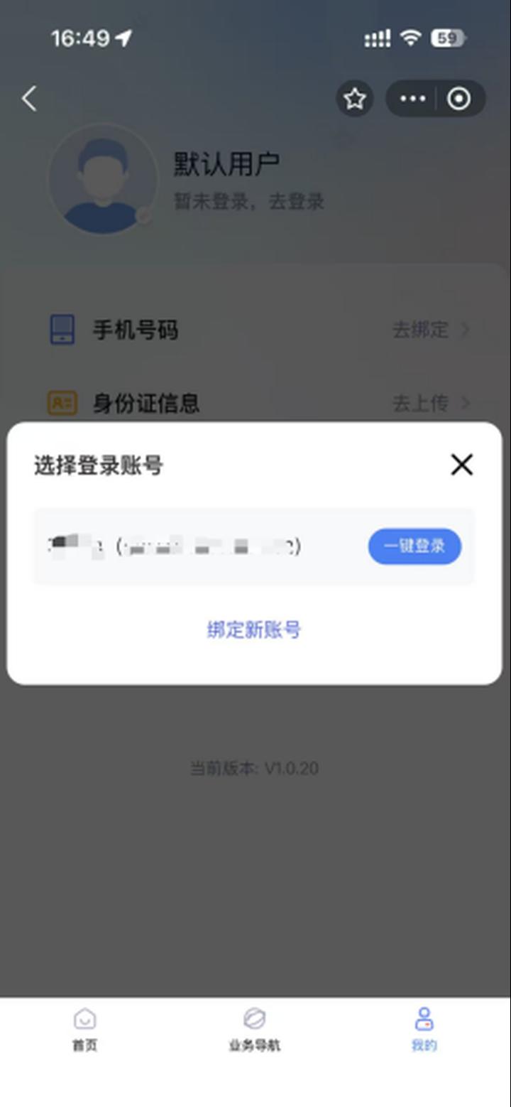 考生进入小程序后,点击任意功能模块,弹出“选择登录账号”弹窗后,点击“绑定新账号”将本人账号与支付宝小程序进行绑定,若已绑定则直接点击“一键登录”。