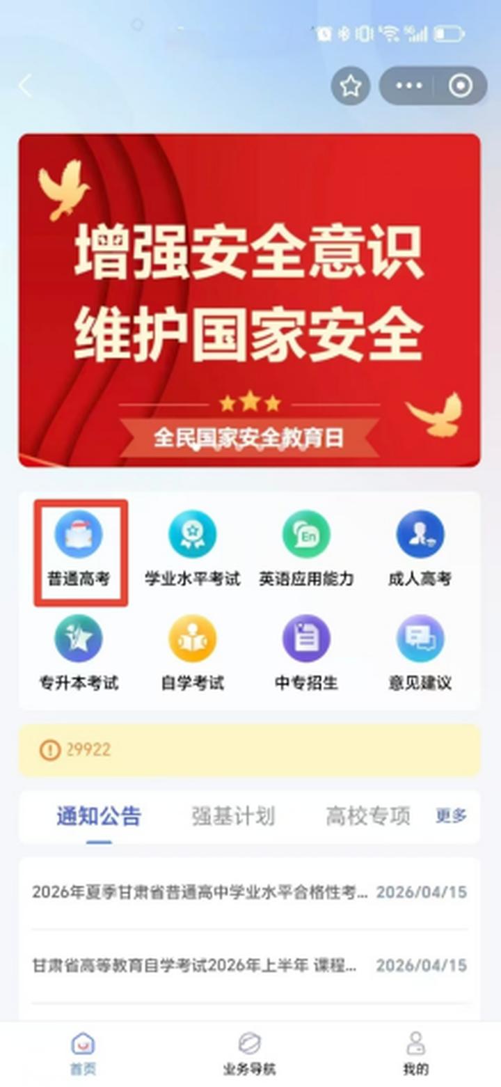 1、甘肃省国家教育考试综合管理平台—考生服务平台