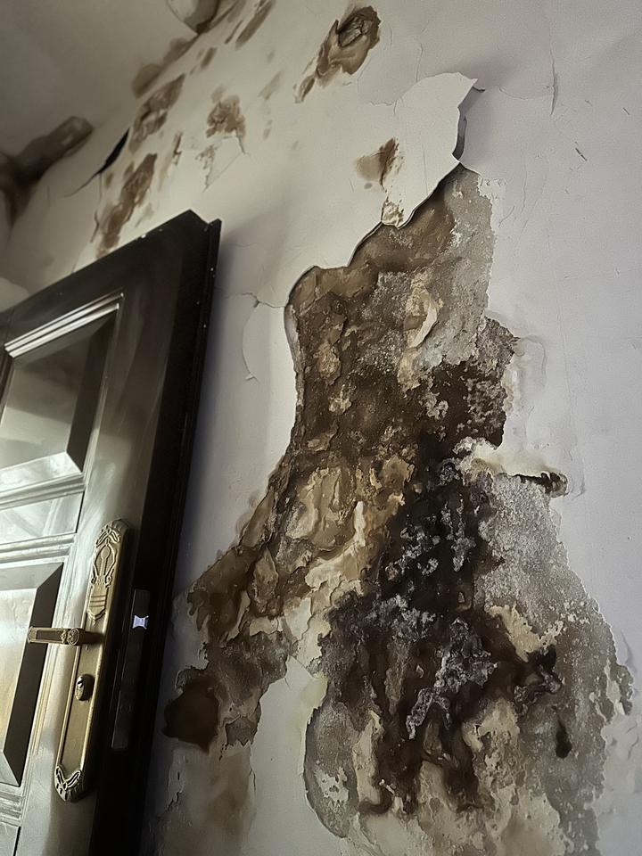 “最严重的时候,水顺着墙面往下流,像小瀑布一样。”唐先生告诉记者,渗水问题大约从2021年开始出现,起初只是墙角潮湿,后来越发严重。“物业也来看过,确认是墙内渗水,但修了几次都没彻底解决问题。”