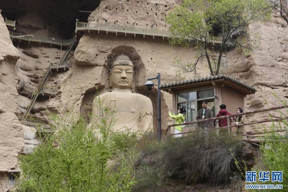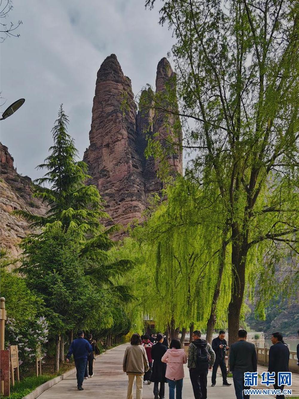位于甘肃省永靖县的炳灵寺石窟迎来踏青游览热潮。新华网发(钟世文 摄)
