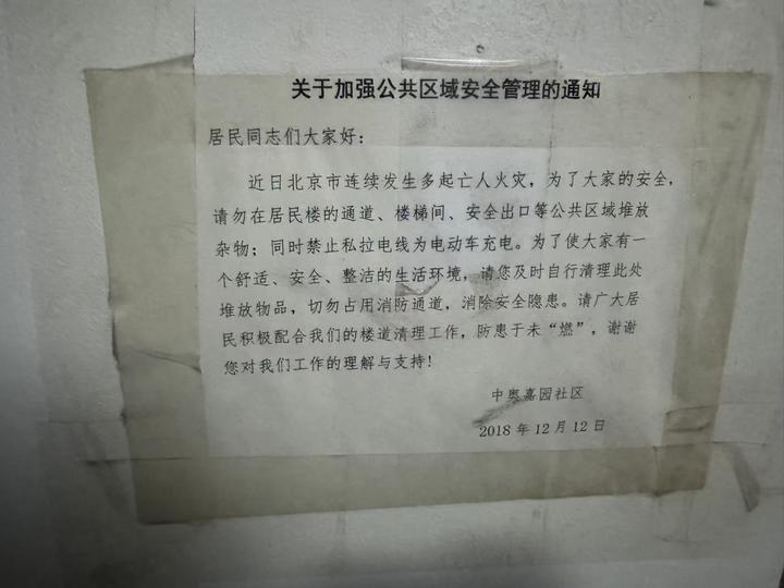 “这次楼道起火就是因为烟头点燃了杂物,可事后还是没能唤醒一些人的安全意识。”近日,丰台区中奥嘉园小区有居民反映,本月初小区楼道发生了烟头引燃杂物的火情,尽管事后物业再次张贴了清理杂物的通知,但不少人仍“视若无睹”。