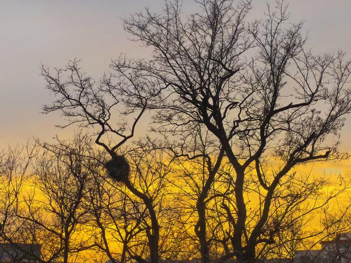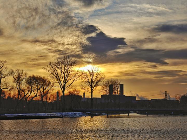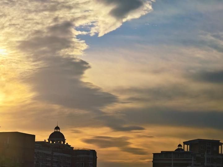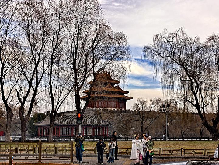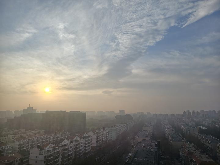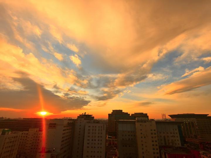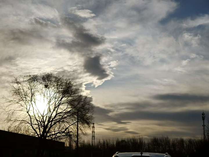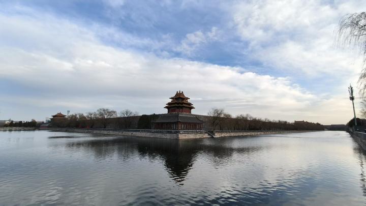 12月19日,北京大风吹散阴霾,天朗气清。冬日的北京,蓝天、白云、枯树、夕阳装扮着城市的建筑,抬头即景,美妙绝伦。