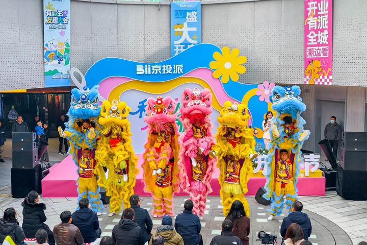 三元桥站,是地铁10号线、12号线与首都机场线的三线交汇点,每日汇聚大量通勤与往来乘客。19日上午,许多进出站的乘客都被下沉广场上热闹的舞狮表演所吸引。围绕着广场,多家餐饮商铺开张,提供各类美食的市集摊位也汇聚着人气。