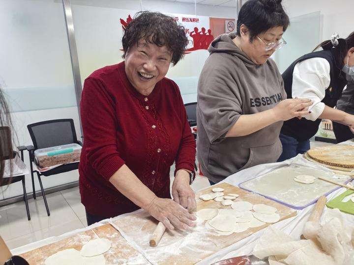 一大早,社区工作人员、居民、辖区商户代表就早早来到现场,大家一起为饺子宴忙碌起来。有的擀皮、有的包馅,一边唠家常,一边包饺子,欢声笑语中,一只只饱满的手工饺子整齐排列,新鲜出炉。随后,大家围坐在一起,品尝亲手包制的饺子,交流工作与生活中的点滴与趣闻。“天冷吃碗热饺子,心里特别暖,一会儿工作也更有劲儿了。”外卖骑手吴师傅笑着说。