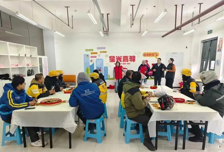 除了热腾腾的饺子,还有暖心大礼包送达。远洋一方嘉园社区为新就业群体服务的——“星光嘉驿”驿站,在冬至后也正式投入使用。启动仪式上,社区邀请北京天驰君泰律师事务所卞律师、北京市劳动模范及新时代青年先锋奖获得者常凯、社区志愿者代表白云鹤大爷,以及外卖骑手代表共同剪彩。据介绍,“星光嘉驿”不仅能提供饮水充电、歇脚休息等多项服务,场地也比较宽敞,后续社区还会联动律所、辖区商户等共建单位资源,为新就业群体提供其他服务,让驿站成为他们在奔波途中的温馨港湾。