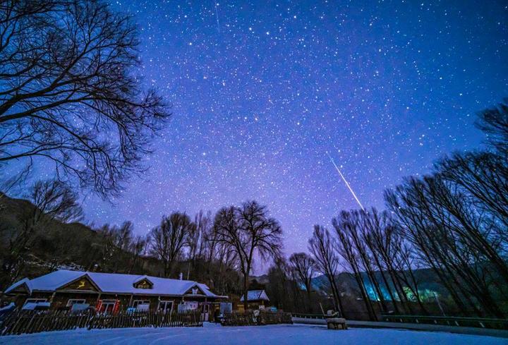 △2020年12月22日,在北京延庆拍摄的小熊座流星雨。