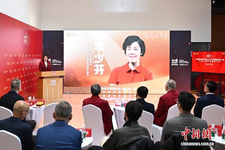 12月25日,2025年中国篮球名人堂入堂人物名单揭晓仪式在北京举行。张锡山、孙军作为“杰出男运动员”入选,周懿娴、李少芬作为“杰出女运动员”入选、王非作为“杰出教练员”入选,罗景荣作为“杰出裁判员”入选,王耀东、陆礼华、范政涛作为“中国篮球先行者”入选,1996年奥运会中国男篮作为“优秀集体”入选。图为仪式现场。