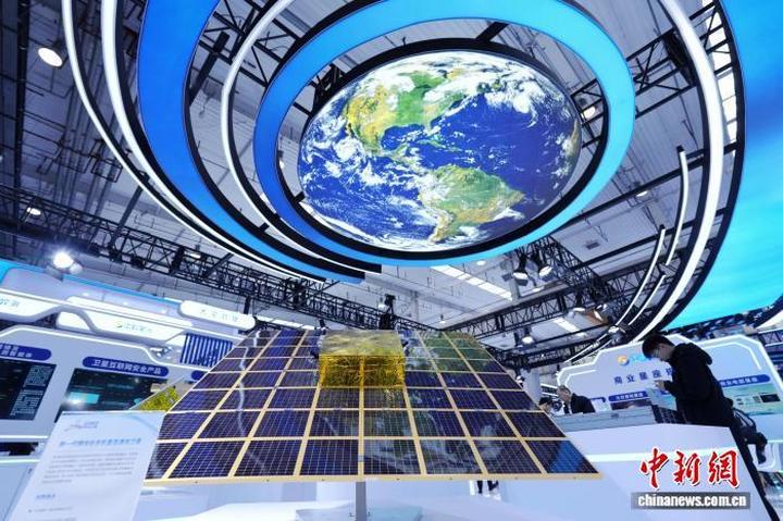 1月23日,2026北京国际商业航天展览会在北京经济技术开发区开幕。图为展出的新一代模块化手机直连通信卫星。 张祥毅 摄