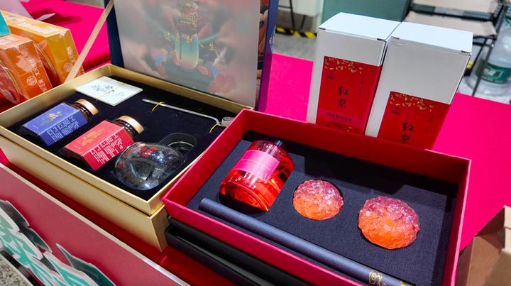 上午10点,“北京最北、怀柔最美”展区内已经人头攒动。来自怀北镇的红肖梨系列小特精产品成为焦点,工作人员热情地向顾客介绍产品:“这是我们今年的新品,把小碗梨带回家,寓意着我们离不开幸福,离不开团圆。”