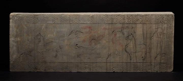 展览主题“坰野彭彭”出自《诗经》,形象描写了开阔郊野中万马奔腾的威武之势。展厅里,各式各样的“骏马”奔腾而来。西汉时期的马虎纹空心砖是展览中年代最早的一件文物,砖面上饰有仙马、老虎及禽鸟图案,描绘了古代苑囿驯养禽兽的场景。画面中的马昂首挺胸、双目圆睁,肌肉骨骼刻画富有张力,线条简洁优美,极具动感,表达了古人对力量、忠诚、自由、奋进的向往。