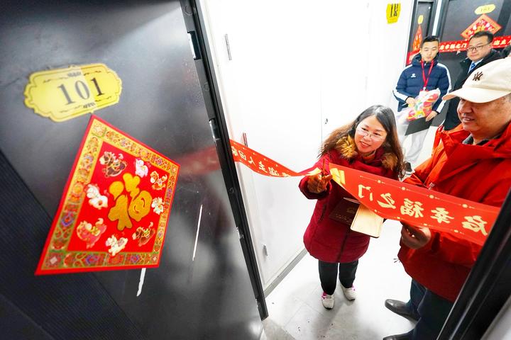 崭新的楼体外立面,抬眼可见的红灯笼,家家门上贴的“福”字……立春当天,老住户们再次回家,焕然一新的感觉和喜庆劲儿扑面而来。手里拿着大红本,刘桂兰不一会就翻开看一遍,直说“看不够”。