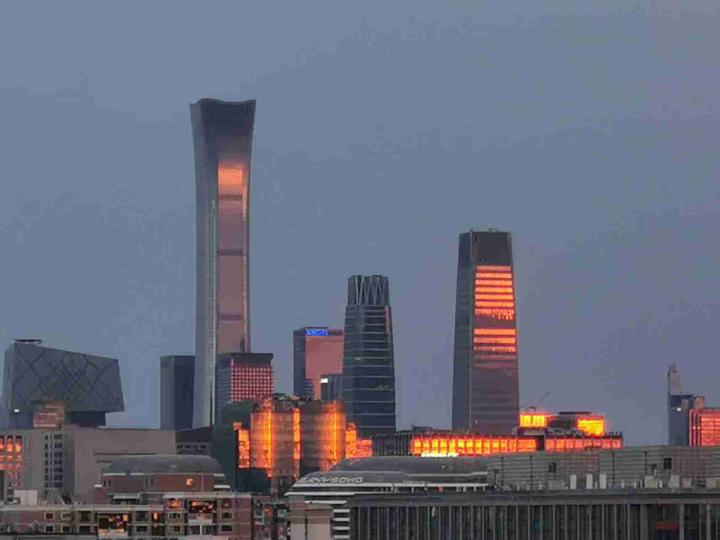 晚霞映照中国尊,花灯燃亮王府井。