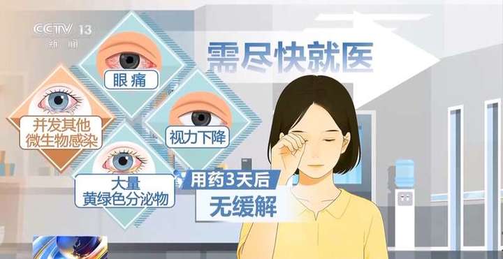 若出现眼痛、视力下降、大量黄绿色分泌物或用药3天后无缓解等情况,可能并发其他微生物感染,需尽快就医。