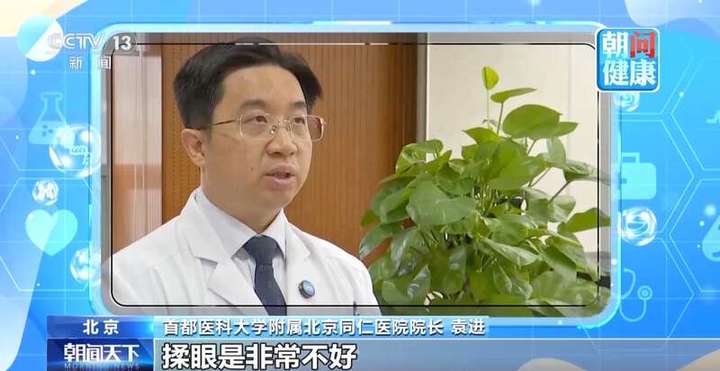 首都医科大学附属北京同仁医院院长 袁进:揉眼是一个非常不好、甚至有一定风险的坏习惯。揉眼过程中会加重眼部血液循环,导致更多炎症介质释放。最新研究还发现,过敏患者如果长期、频繁揉眼,可能会破坏角膜的力学结构,从而显著增加发生圆锥角膜的风险。