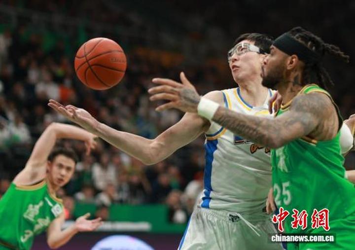 3月21日,在辽宁沈阳举行的2025-2026赛季中国男子篮球职业联赛(CBA)常规赛第28轮比赛中,辽宁本钢队主场以83比93不敌北京北汽队。图为北京北汽队球员周琦(左)在比赛中。