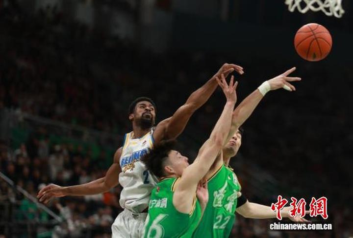 辽宁本钢队球员李晓旭(中)在比赛中拼抢。