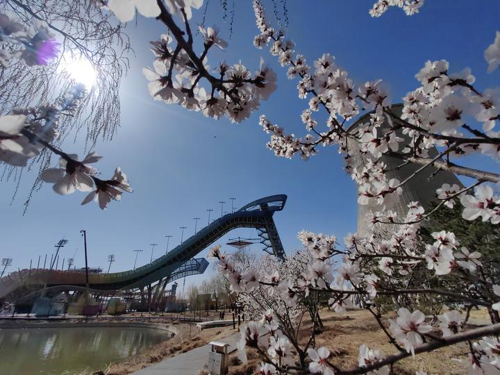 3月22日,首钢园内,山桃花如期盛放,粉白繁花与工业遗存相映成趣,勾勒出独属于石景山的“钢”柔并济之美。莲石湖畔的北京冬奥公园的桃花则多了几分灵动。这里的桃花开在莲石湖畔,与尚未褪尽的芦苇隔水相望,春水潺潺,桃花灼灼,让春天在这里流动了起来 。
