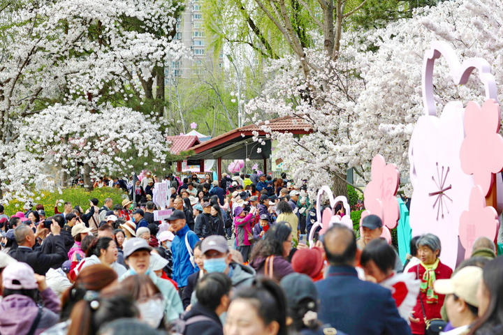 ↑2026年3月30日,游人在北京玉渊潭公园踏青赏花。CICPHOTO/刘宪国 摄